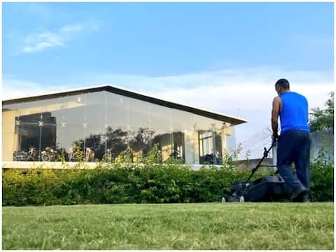 नई दिल्ली: देश और दुनिया में कोरोना वायरस का कहर बढ़ता ही जा रहा है. वहीं लॉकडाउन के चलते पूर्व भारतीय कप्तान महेंद्र सिंह धोनी अपने परिवार के साथ समय बिता रहे हैं. चेन्नई सुपर किंग्स के ऑफिशियल ट्विटर हैंडल से एमएस धोनी की एक तस्वीर ट्वीट की गई है. इस तस्वीर में धोनी रांची में अपने फार्महाउस के लॉन में घास काटते हुए दिखाई दे रहे हैं.