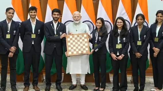 PM Modi Meet Indian Chess Olympiad Team: चेस ओलंपियाड जीतने वाली टीम इंडिया से प्रधानमंत्री नरेंद्र मोदी ने खास मुलाकात की. इस मुलाकात का वीडियो सामने आया है. भारत की पुरुष और महिला शतरंज महिला टीम ने रविवार को चेस ओलंपियाड में गोल्ड मेडल जीते. भारत की पुरुष और महिला टीमों ने पहली बार चेस ओलंपियाड में गोल्ड पर कब्जा किया.