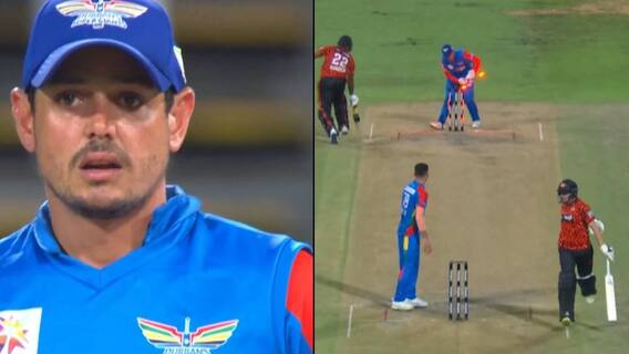 डिकॉक की चालाकी नहीं समझ पाए बल्लेबाज क्विंटन डिकॉक की यह चालाकी सनराइडर्स ईस्टर्न कैप की पारी के आखिरी ओवर में देखने को मिला. आखिरी ओवर की दूसरी गेंद पर सनराइजर्स के बल्लेबाज लियान डॉसन ने गेंद को सामने की ओर खेला पहली बार देख ऐसा लगा कि गेंद बाउंड्री लाइन के बाहर चार रनों के लिए चली जाएगी. पर डरबन सुपर जायंट्स के फील्डर वियान मुल्डर ने आखिरी समय पर शानदार डाइव लगाकर गेंद को रोक लिया. इस दौरान बल्लेबाज तीसरे रन के लिए भाग रहे थे.