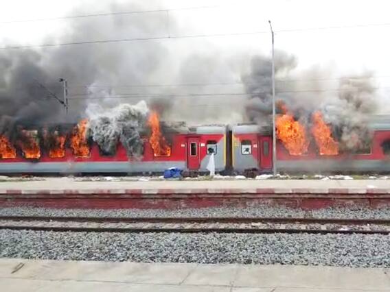 Agnipath Protests: गया में पैसेंजर ट्रेन को जलाया गया-किऊल-हावड़ा रेलखंड के पैमार स्टेशन पर खड़ी गया-बख्तियारपुर पैसेंजर ट्रेन को उपद्रवियों ने फूंक डाला. खाली पड़े कोच में जमकर तोड़फोड़ की. पैमार स्टेशन के रेलकर्मी कुछ कर पाते तब तक कोच में आग लग चुकी थी. पूरी ट्रेन में आग न लग जाए इसलिए सावधानी बरतते हुए जलती हुई कोच को ट्रेन से अलग कर दिया गया.