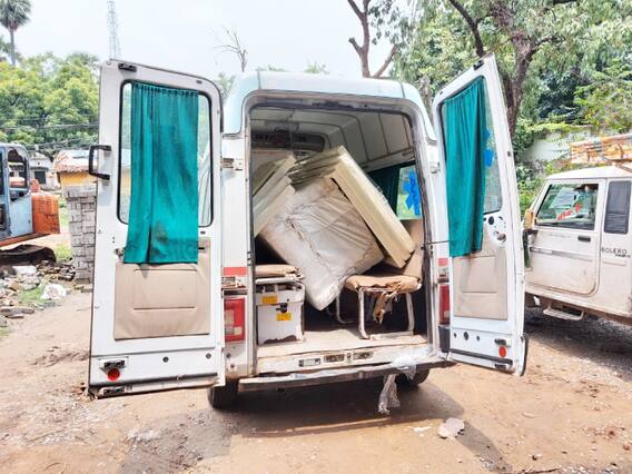 जानकारी के अनुसार, मंगलवार को एक बड़ी गाड़ी से अस्पताल के लिए बेड लाए गए. उसके साथ लोहे के बड़े-बड़े अन्य सामान थे. सामान को अस्पताल में ले जाने के लिए कोई और साधन नहीं मिला नहीं तो यहां एंबुलेंस का ही सहारा ले लिया गया. एंबुलेंस पर नंबर प्लेट तक नहीं था.