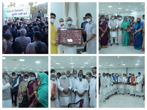 पटना: बिहार के मुख्यमंत्री नीतीश कुमार आज चुनाव परिणाम के बाद दूसरी बार और मुख्यमंत्री बनने के बाद पहली बार जेडीयू कार्यालय पहुंचे. पार्टी के मंत्रियों, विधायकों और कार्यकर्ताओं से मिले. इस दौरान मुख्यमंत्री के साथ नेताओं कार्यकर्ताओं ने खुब तस्वीरें खिंचवाई. मुख्यमंत्री नीतीश कुमार को बिहार विधानसभा चुनाव में एनडीए ने 125 सीट हासिल करने के बाद अपना नेता चुना. राजभवन में सोमवार को हुए शपथ ग्रहण समारोह में नीतीश की एक बार फिर बिहार के मुख्यमंत्री के तौर पर ताजपोशी हो गई है. उन्होंने 7वीं बार मुख्यमंत्री पद की शपथ ली. आज नवगठित मंत्रिमंडल में विभागों के बंटवारे के बाद जेडीयू के राष्ट्रीय अध्यक्ष और मुख्यमंत्री नीतीश कुमार पार्टी के नवगठित मंत्रियों, विधायकों और कार्यकर्ताओं से मिले. इस दौरान नीतीश कुमार ने कहा कि जनता में हमें जनादेश दिया है और हम उसका सम्मान करते हैं. बिहार को और आगे ले जाने के लिए प्रयास करते रहेंगे.जेडीयू कार्यालय पहुंचे मुख्यमंत्री नीतीश कुमार इस दौरान पार्टी के विधायकों, सांसदों और कार्यकर्ताओं से पूरी गर्मजोशी से मिले साथ हीं उन कार्यकर्ताओं से मिले जो चुनाव में पराजित हो गए हैं. . इस दौरान मुख्यमंत्री नीतीश कुमार ने कहा कि कार्यकर्ताओं से मिलना मेरा काम है. किसी को निराश नहीं होना चाहिए यही प्रयास है. जेडीयू कार्यालय में बिहार विधानसभा चुनाव 2020 में पराजित होने वाले उम्मीदवारों के साथ दूसरे राज्यों से आए कार्यकर्ताओं से भी मुख्यमंत्री ने मुलाकात की.