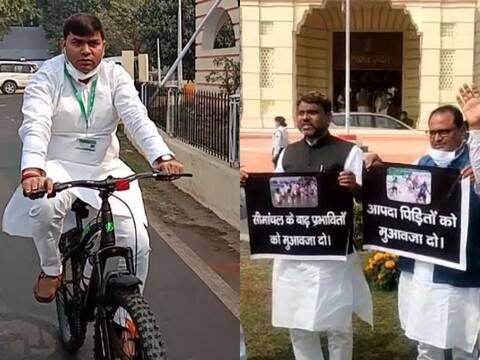 पटना: बिहार विधानसभा के बजट सत्र के पहले दिन विपक्ष के विधायकों ने विरोध का पुराना तरीका अपनाया. कोई साइकिल पर चलकर आया तो कोई मिट्टी का चूल्हा लेकर आ गया. पेट्रोल-डीजल के बढ़ते दामों का विरोध करने के लिए आरजेडी के महुआ से विधायक मुकेश रौशन ने साइकिल की सवारी की. इनका दावा है कि साईकल से अपने विधानसभा क्षेत्र महुआ, हाजीपुर से पटना बिहार विधानसभा पहुंचे हैं.