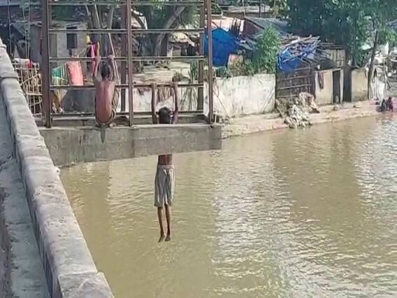 बच्चे अखाड़ा घाट पुल पर चढ़ कर नदी में छलांग लगाते हैं, उफनती नदी में तैरते हैं, फिर किनारे पर आकर दोबारा छलांग लगाते हैं. पूरे दिन ये सिलसिला चलता रहता है. रास्ते से गुजरने वाले लोग रुककर बच्चों का करतब देखते हैं और फिर अपने रास्ते चल देते हैं. सिकंदर पुर ओपी से चंद कदमों की दूरी पर बच्चे जान से खिलवाड़ कर रहे हैं, मगर प्रशासन का इस ओर कोई ध्यान नहीं है.