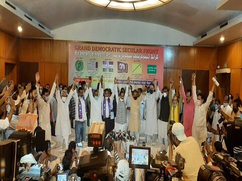 पटना: बिहार विधान सभा के ऐलान के साथ हीं बिहार में जोड़-तोड़ की राजनीति तेज हो गई. अभी एनडीए, महागठबंधन के टुटते जुड़ते रिश्तों की आग ठंडी भी नही हुई थी कि बिहार में उपेन्द्र कुशवाहा के नेतृत्व में एक नये गठबंधन ग्रैंड डेमोक्रेटिक सेक्यूलर फ्रंट का गठन किया गया है. इस गठबंधन में शामिल हैं. आरएलएसपी, एआईएमआईएम, बीएसपी, समाजवादी जनतादल,डेमोक्रेटिक जनतांत्रिक पार्टी सोशियलिस्ट, और सूहेलदव भारतीय समाज पार्टी. बिहार विधान सभा चुनाव में यह फ्रंट 243 सीटों पर चुनाव लडेगा. इस गठबंधन में मुख्यमंत्री पद के दावेदार होंगे उपेन्द्र कुशवाहा. ज्वाइंट प्रेस कांफ्रेंस के दौरान दलों के वरिष्ठ नेताओं ने जीत की भी दावेदारी ठोंकी