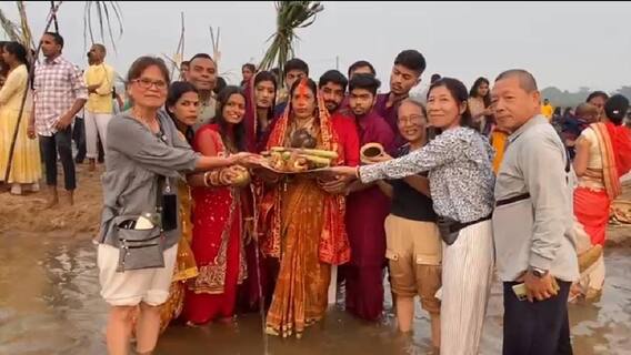 Foreign Tourists Reached Chhath Ghat: लोक आस्था के महापर्व छठ पर्व के तीसरे दिन गुरुवार (07 नवंबर) को छठ व्रतियों ने घाटों पर भगवान सूर्य को अर्घ्य दिया. यूपी और बिहार के महापर्व छठ की महिमा अब सिर्फ भारत तक ही सीमित नहीं रह गई है. दुनिया के कई देशों में छठ महापर्व को पूरी श्रद्धा और उत्साह के साथ मनाया जा रहा है. विदेशों में रहने वाले भारतीय मूल के निवासियों सहित खुद विदेशी नागरिक भी इस महापर्व को अपनाने लगे हैं. इसी क्रम अब भारत पहुंचे विदेशी पर्यटक भी छठ महापर्व में शामिल हो रहे हैं.