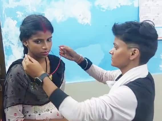 जमुई: बिहार के जमुई से समलैंगिक विवाह का मामला सामने आया है. दो लड़कियों को एक-दूसरे से प्यार हुआ और फिर दोनों ने मंदिर में शादी रचा ली. 20 साल की कुमकुम की मांग में 18 साल की निशा ने सिंदूर भरा और फिर मंगलसूत्र भी पहनाया. हालांकि प्यार में दीवार बने निशा के पिता ने थाने में केस कर दिया. शुक्रवार (27 अक्टूबर) को दोनों लड़कियों को पुलिस ने हिरासत में ले लिया.