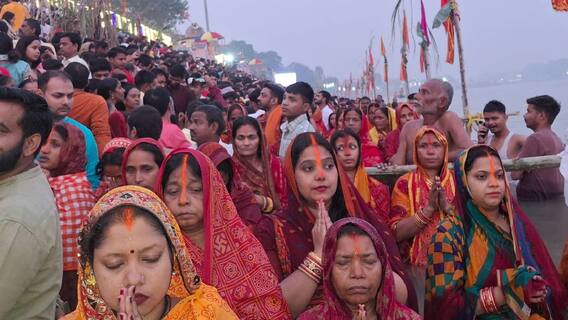 Devotees Offered Prayers To Rising Sun: बिहार की राजधानी पटना में छठ पूजा के अंतिम दिन शुक्रवार ( 08 नवंबर) को श्रद्धालुओं ने उगते सूर्य को अर्घ्य दिया. लाखों की संख्या में छठ व्रती, दीघा घाट, गंगा घाट और कंगना घाट समेत अन्य घाटों पर पहुंचे थे. पटना के अलावा गया, मुजफ्फरपुर, वैशाली, आरा, भागलपुर, बक्सर में भी हजारों की संख्या में श्रद्धालुओं ने नदियों और तालाबों पर जाकर सूर्य की उपासना की. इसे साथ ही चार दिवसीय महापर्व छठ पूजा संपन्न हो गया.