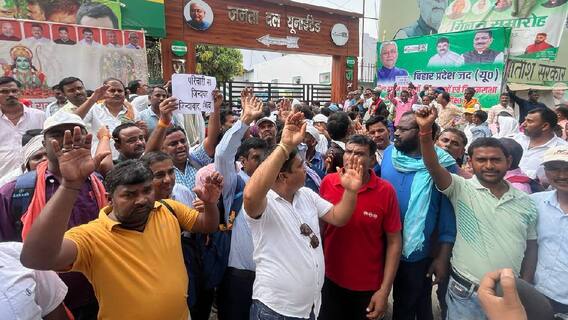 Patna News: नियुक्ति की मांग को लेकर मंगलवार को भारी संख्या में परिचारी संघ से जुड़े लोगों ने पटना में जेडीयू कार्यालय का घेराव किया. ये लोग ऑफिस के बाहर धरना दे रहे हैं और अंदर जाना चाहते हैं. इस प्रदर्शन को देखते हुए जेडीयू दफ्तर की सुरक्षा बढ़ाई गई. पुलिसकर्मियों की तैनाती की गई. गेट अंदर से लॉक किया गया.