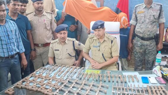 भारी मात्रा में अर्ध निर्मित हथियार और उपकरण बरामद