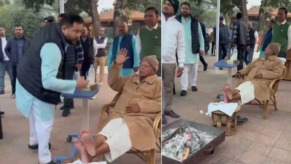 वीडियो में दिख रहा है कि कड़ाके की ठंड में लालू यादव अपने पुराने अंदाज में अलाव जलाकर बैठे हुए हैं. इसी दौरान तेजस्वी यादव यात्रा पर निकलने से पहले उनके पास आते हैं और पैर छूकर आशीर्वाद लेते हैं. तेजस्वी यादव को लालू प्रसाद यादव ने अपने हाथों को ऊपर करके आशीर्वाद दिया और यात्रा के लिए विदा किया. वीडियो में देखा जा सकता है कि तेजस्वी यादव के पीछे राज्यसभा सांसद और उनके सहायक संजय यादव मौजूद हैं. संवाद कार्यक्रम के पांचवें फेज की शुरुआत 30 दिसंबर से होनी है, उससे पहले तेजस्वी यादव अपने पिता का आशीर्वाद लेकर सीतामढ़ी के लिए रवाना हो चुके हैं.