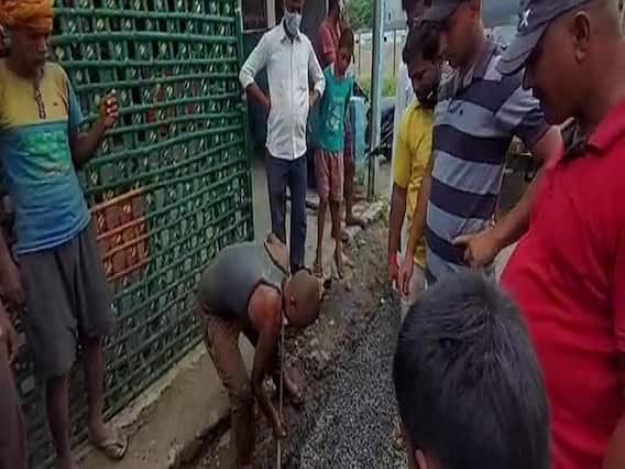 सुपौल: बिहार के सुपौल जिले के त्रिवेणीगंज में सोमवार को ग्रामीणों ने सड़क निर्माण करा रहे ठेकेदार के खिलाफ मोर्चा खोल दिया. निर्माण काम में घटिया सामग्री का इस्तेमाल करने का आरोप लगाते हुए ग्रामीणों ने जमकर हंगामा किया, जिससे काम बाधित हो गया. दरअसल, मुख्यमंत्री ग्रामीण पथ अनुरक्षण कार्यक्रम के तहत त्रिवेणीगंज बाजार के एनएच-327ई जनता रोड से वंशी चौक होते हुए मेला ग्राउंड तक लगभग 68 लाख 18 हजार रुपये की लागत से 1.680 किमी की सड़क का निर्माण कराया जा रहा है.