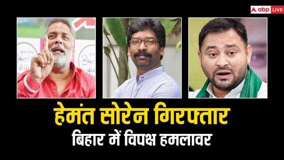 पटना: कथित जमीन घोटाला के मामले में हेमंत सोरेन (Hemant Soren) बुधवार (31 जनवरी) को गिरफ्तार कर लिए गए हैं. उन्होंने मुख्यमंत्री के पद से इस्तीफा दे दिया है और अब झारखंड के मुख्यमंत्री चंपई सोरेन होंगे. ईडी (ED) की ओर से हुई हेमंत सोरेन की गिरफ्तारी के बाद बिहार का भी राजनीतिक माहौल गर्म है. लगातार विपक्ष के नेता बीजेपी पर हमलावर हैं. बिहार के पूर्व उपमुख्यमंत्री तेजस्वी यादव (Tejashwi Yadav) और जाप सुप्रीमो पप्पू यादव (Pappu Yadav) ने सोशल मीडिया के जरिए कड़ी प्रतिक्रिया दी है.