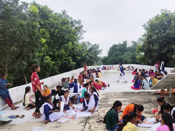 मुंगेर: बिहार में शिक्षा व्यवस्था की पोल खोलने वाली तस्वीरें फिर से सामने आई हैं. मुंगेर में में कोई छत पर तो कोई बरामदे में बैठकर परीक्षा दे रहा है. तस्वीर सामने आने के बाद एक बार फिर शिक्षा व्यवस्था पर सवाल खड़े हो गए हैं. यह तस्वीरें आरएस कॉलेज तारापुर की हैं. शिक्षक की जगह एनसीसी कैडेट्स परीक्षा संचालन में मदद कर रहे हैं. मंगलवार (26 सितंबर) से यह सोशल मीडिया पर वायरल हो रही हैं.