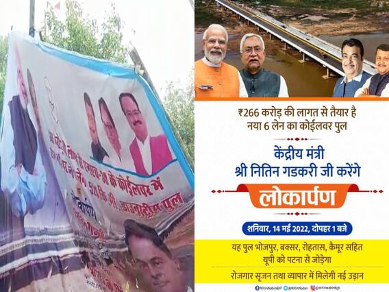पटनाः 266 करोड़ की लागत से एनएच-30 (922) के कोईलवर में सोन नदी पर बने डाउनस्ट्रीम 3 लेन पुल का आज शनिवार को उद्घाटन होगा. इसके लिए जगह-जगह पोस्टर लगाए गए थे. इस पोस्टर में कहीं भी जेडीयू के नेताओं को जगह नहीं मिली. इतना ही नहीं बल्कि मुख्यमंत्री नीतीश कुमार (CM Nitish Kumar) तक की तस्वीर नहीं लगाई गई. एबीपी न्यूज ने इस पर जब खबर दिखाई तो बीजेपी (BJP) में खलबली मच गई है. पुराने पोस्टर को हटाया गया और नए पोस्टर लगा गए जिसमें नीतीश कुमार की तस्वीर लगाई गई है.