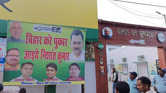 इस पोस्टर में सबसे ऊपर में एक ओर नीतीश कुमार की तस्वीर लगाई गई है तो दूसरी तरफ निशांत कुमार की बड़ी तस्वीर लगाई गई है. पोस्टर में निवेदक के रूप में लिखा गया है समस्त जनतागण. पोस्टर के नीचे चार अन्य नेताओं की तस्वीर भी है. इनमें अभय पटेल, वरुण कुमार और चंदन पटेल हैं. तस्वीर के नीचे इनका नाम लिखा गया है.