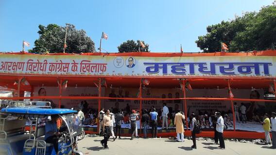 Bihar BJP Protest: कांग्रेस के खिलाफ बिहार बीजेपी ने शनिवार को महाधरना आयोजित की. अनुसूचित जाति मोर्चा के तरफ से यह धरना किया गया है. इस धरना प्रदर्शन में बीजेपी के कई नेता सहित बड़ी संख्या में कार्यकर्ताओं का जुटान हुआ है. बता दें कि आरक्षण को लेकर कांग्रेस नेता राहुल गांधी के दिए गए बयान के खिलाफ बीजेपी प्रदर्शन कर रही है.