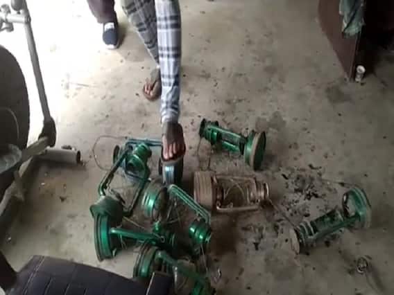 दरभंगा: बिहार में 24 सीटों पर होने वाले एमएलसी चुनाव को लेकर दरभंगा आरजेडी (RJD) में विद्रोह खत्म होने का नाम नहीं ले रहा. ऐसे में पार्टी ने सख्ती बरतते हुए कार्रवाई करनी शुरू कर दी है, जिससे कार्यकर्ताओं की नाराजगी दोगुनी हो गई है. ताजा मामला गुरुवार का है, जहां पार्टी नेतृत्व से नाराज प्रदेश युवा महासचिव ने अपने कटरहिया स्थित आवास में आयोजित पीसी के दौरान कार्यकर्ताओं के साथ मिलकर कार्यालय में लगे पार्टी के चुनाव चिह्न और बैनर पोस्टर को फाड़ दिया. वहीं, दर्जनों लालटेन को फोड़कर, पैरों से रौंद डाला.