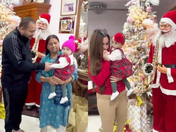 वीडियो में क्रिसमस ट्री और सांता क्लॉस के साथ बैंड की धून पर सभी परिवार मस्ती कर रहे हैं. कभी राबड़ी देवी अपनी पोती कात्यायनी को गोद में लेकर झूम रहीं हैं तो तेजस्वी यादव भी झूमते दिख रहे हैं. राजश्री उर्फ रेचल अपनी बेटी को लेकर भी डांस कर रही हैं. इस वीडियो में तेज प्रताप यादव की जो तस्वीर अलग से लगाई गई है उसमें वो अपनी भतीजी कात्यायनी को गोद में लेकर खड़े हैं.