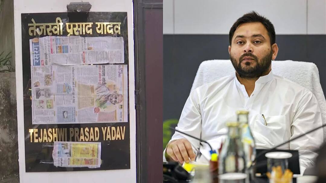 आरजेडी नेता तेजस्वी यादव के आवास के बाहर नेमप्लेट पर लिखा 'बिहार के डिप्टी सीएम' को अखबारों के पन्नों से छिपा दिया गया है. नई सरकार गठन के बाद तेजस्वी यादव अब बिहार के डिप्टी सीएम नहीं रहेंगे. इससे पहले बिहार के पूर्व डिप्टी सीएम तेजस्वी यादव ने अपने एक्स हैंडल का बायो चेंज कर लिया था.