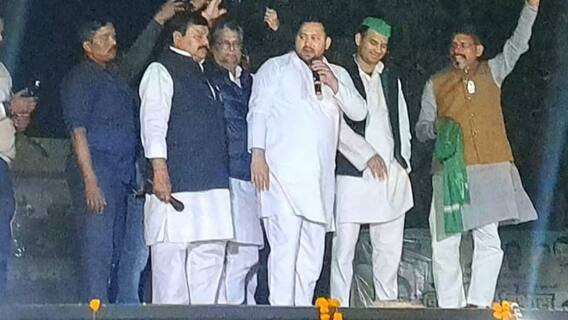 इसके बाद तेजस्वी यादव ने अपने रथ की छत पर सवार होकर माइक से भाषण शुरू किया और लोगों से बीजेपी को भगाने और देश को बचाने की अपील की. उन्होंने कहा कि देश से बीजेपी को भागना है और देश को बचाना है. तेजस्वी यादव ने सीएम नीतीश कुमार (Nitish Kumar) पर हमला करते हुए कहा "चाचा पलट गए, कोई बात नहीं, लेकिन वो जहां भी रहे खुश रहें. अब उनसे बिहार चलने वाला नहीं है. अब हम लोगों को बिहार को आगे ले जाना है."