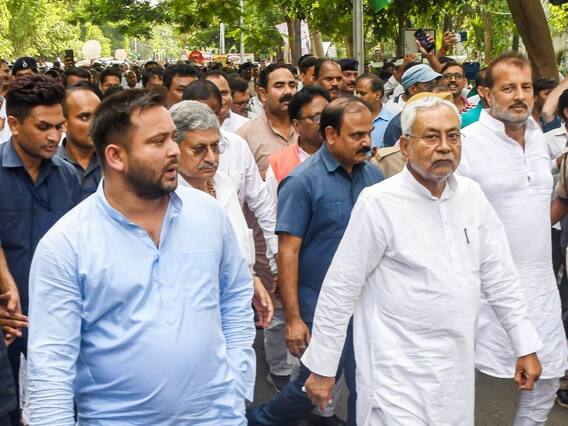 Bihar Politics: बिहार में महागठबंधन की नई सरकार का कल यानी बुधवार को दोपहर 2 बजे शपथ ग्रहण होगा. सूत्रों के मुताबिक, तेजस्वी यादव डिप्टी सीएम बनेंगे. मंगलवार को नीतीश कुमार ने तेजस्वी यादव और महागठबंधन के नेताओं के साथ मिलकर बिहार में नई सरकार बनाने का दावा पेश किया. राज्यपाल को सौंपी गई चिट्ठी में 164 विधायकों समर्थन है. इसमें सात दलों के विधायक शामिल है. सरकार बनाने का दावा पेश करने के बाद नीतीश कुमार और तेजस्वी यादव ने मीडिया से बातचीत की. संयुक्त वार्ता में नीतीश कुमार ने कहा, "मैं यहां राज्यपाल से मिलने आया और अपना इस्तीफा दे दिया कि बिहार की सेवा करना ही हमारा एजेंडा है. हमारे पास सात दलों का समर्थन है. इसमें लेफ्ट और जीतन राम मांझी की पार्टी भी शामिल है." नीतीश कुमार ने बिना आरसीपी सिंह का नाम लिए बीजेपी पर भी निशाना साधा.