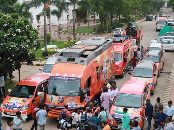 दरअसल, सोमवार (11 सितंबर) सुबह बीजेपी के प्रदेश कार्यालय कुशाभाऊ ठाकरे परिसर में पार्टी के परिवर्तन यात्रा के लिए बस और कारों के जत्थे को रवाना किया गया है. इस जत्थे में 2 बस, 8 कार, एक साउंड सिस्टम वाली गाड़ी शामिल है. बीजेपी इसे परिवर्तन यात्रा का रथ कह रही है. बीजेपी का रथ आधुनिक सुरक्षा उपकरणों से लैस है. रथ की छत पर मंच की व्यवस्था की गई है. इस मंच पर पहुंचने के लिए ऑटोमेटिक सीढ़ी की व्यवस्था है यानि हाइड्रोलिक सिस्टम के तहत बस के ऊपर पहुंचा जा सकेगा. इसके अलावा बस के अंदर सीसीटीवी कैमरे से निगरानी रखने के लिए टीवी स्क्रीन लगाया गया है. इससे बस के चारों तरफ का व्यू बस के अंदर से देखा जा सकता है.