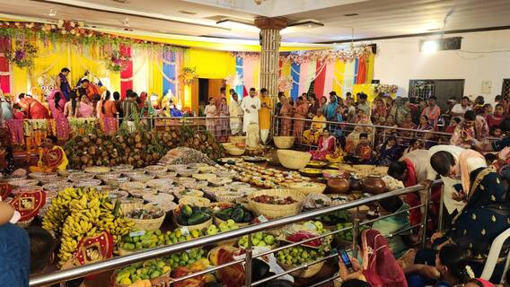 Chhattisgarh Goncha Mahaparv: छत्तीसगढ़ के बस्तर में मनाए जाने वाले गोंचा महापर्व के 21 वें दिन भगवान जगन्नाथ स्वामी, बलभद्र और देवी सुभद्रा को 56 भोग लगाया गया, और भव्य आरती का आयोजन हुआ, इस मौके पर बड़ी संख्या में श्रद्धालु मंदिर में मौजूद रहे, दरअसल गोंचा महापर्व में 56 भोग रस्म का अलग ही महत्व है.