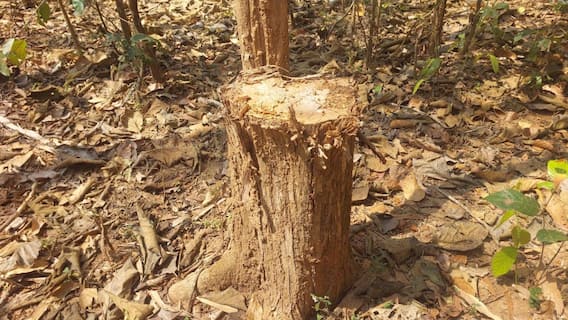 Kanger Valley National Park: बस्तर (Bastar) में मौजूद कांगेर वैली नेशनल पार्क (Kanger Valley National Park) में बीते कुछ महीनों से वन तस्करों के हौसले इस कदर बुलंद हैं कि वो यहां बेशकीमती सागौन के पेड़ों की लगातार अंधाधुंध कटाई कर रहे हैं. आलम यह है कि मुख्य सड़क से महज 100 मीटर की दूरी पर ही तस्करों ने 25 से ज्यादा सागौन के पेड़ की बलि चढ़ा दी है. बकायदा तस्करों ने मशीन से सागौन के पेड़ों की कटाई की है.