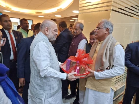रायपुर एयरपोर्ट में सीएम भूपेश से अमित शाह की मुलाकातदरअसल कोरबा से लौटकर केंद्रीय गृह मंत्री अमित शाह रायपुर एयरपोर्ट पहुंचे तो इसी मौके पर गरियाबंद जिले से मुख्यमंत्री भूपेश बघेल सीधे एयरपोर्ट पहुंच गए. दोनों के बीच कुछ देर के लिए मुलाकात हुई. मुख्यमंत्री बघेल ने उन्हें छत्तीसगढ़ में मिलेट्स से बने उत्पाद और छत्तीसगढ़ की संस्कृति पर आधारित कलाकृति उन्हे स्मृति स्वरूप भेंट किया है. इसके अलावा मुख्यमंत्री भूपेश बघेल ने केंद्रीय गृह मंत्री से छत्तीसगढ़ के विकास कार्यों के संबंध में चर्चा भी की है.