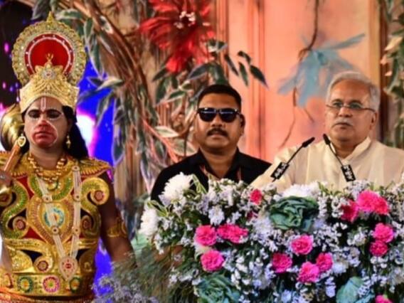 मुख्यमंत्री भूपेश बघेल के साथ खड़े रहे बजरंगबली ! एक और तस्वीर इस महोत्सव में चर्चा का विषय बना रहा है. जब मंच पर मुख्यमंत्री भूपेश बघेल भाषण दे रहे थे तब उनके साथ हनुमान(Hunuman) जी थे. यानी एक कलाकार बजरंगबली की वेशभूषा में गदा धारण किए मुख्यमंत्री के साथ खड़े रहे है. इसके अलावा जब मुख्यमंत्री मंच से नीचे गए तो कलाकार ने मुख्यमंत्री भूपेश बघेल(Cm bhupesh baghel) से मुलाकात की है. वहीं रामायण महोत्सव में संस्कृति मंत्री अमरजीत भगत ने मुख्यमंत्री भूपेश बघेल को रामचरित मानस(Ramcharit Manas) देकर उनको सम्मानित किया वहीं इस महोत्सव शामिल होने आए बहार के कलाकारों को भी रामचरित मानस दिया जा रहा है.