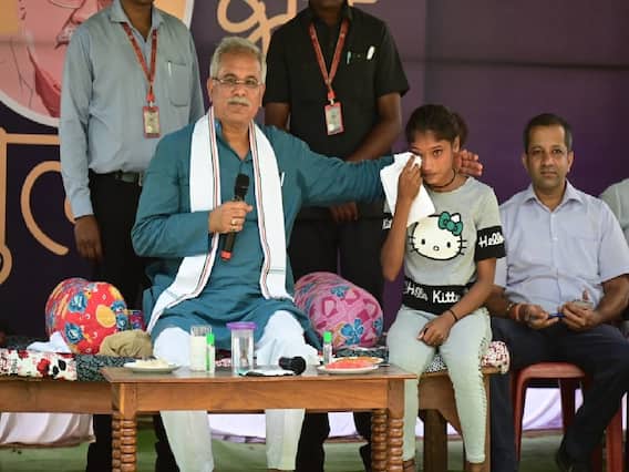 CM Bhupesh Baghel Bhent Mulakat Program in Bastar: मुख्यमंत्री भूपेश बघेल (Bhupesh Baghel) भेंट मुलाकात कार्यक्रम के तहत बस्तर (Bastar) जिले की तीनों विधानसभा का दौरा कर रहे हैं. इतना ही नहीं सीएम बघेल यहां ग्रामीणों के बीच जन चौपाल भी लगा रहे हैं. गुरुवार को बस्तर विधानसभा के भैंसगांव में भी मुख्यमंत्री ने भेंट मुलाकत कार्यक्रम (Bhent Mulakat Program) के तहत जन चौपाल (Jan Choupal) लगाई और ग्रामीणों की समस्याओं को सुना. वहीं, ग्रामीणों की भीड़ के बीच मुख्यमंत्री ने एक छोटी बच्ची को रोते बिलखते देखा तो उसे अपने पास मंच पर बुलाया. सीएम ने बच्ची के सिर पर हाथ फेरा और उसे पानी पिलाया.