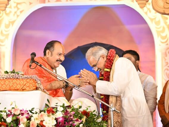 छत्तीसगढ़ में पंडित प्रदीप मिश्रा की कथा सुनने के लिए लाखों की संख्या में श्रद्धालु रायपुर पहुंच रहे हैं. शिव महापुराण के आखिरी दिन रविवार को भी लाखों की संख्या में श्रद्धालु मौजुद थे. इस दौरान छत्तीसगढ़ के मुख्यमंत्री भूपेश बघेल भी पहुंचे. मुख्यमंत्री ने पंडित प्रदीप मिश्रा का आशीर्वाद लिया है. इसके बाद मुख्यमंत्री ने श्रद्धालुओं को संबोधित किया है.