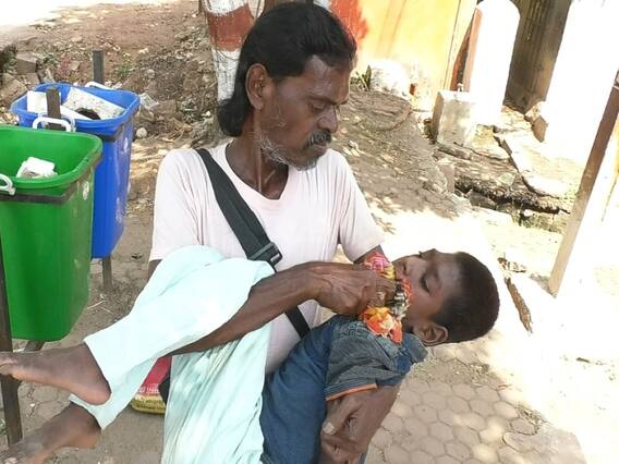Chhattisgarh Durg Father Became Beggar: देश की सरकारें कुपोषित बच्चों (Malnourished Children) की देखभाल और रखरखाव के लिए कई योजनाएं चला रही हैं. लेकिन सवाल ये है कि क्या इस योजना का लाभ कुपोषित बच्चों को मिल पा रहा है. अगर नहीं मिल पा रहा है तो इसके पीछे क्या कारण हैं. क्या सरकारी दावे सिर्फ कागजों में ही किए जा रहे हैं. हम आपको ऐसे ही एक शख्स की आपबीती के बारे में बताने जा रहे हैं जिसे जानने के बाद आपकी आंखें नम हो जाएंगी. आखिर क्यों एक पिता (Father) 11 साल से अपने बच्चे (Child) को गोद में लेकर भटक रहा है, चाहे भीषण गर्मी हो, बरसात हो या फिर ठंड. ये पिता अपने बेटे को गोद में उठाकर जगह-जगह मदद की गुहार पिछले 11 सालों से लगा रहा है.