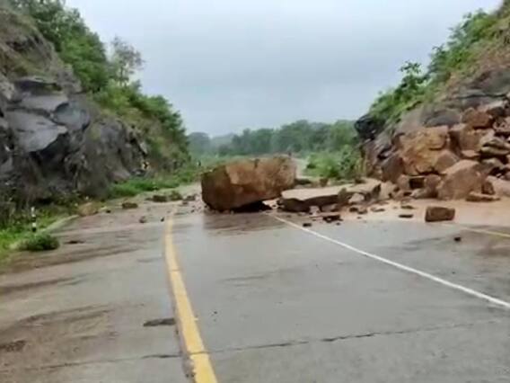 चौड़ीकरण के लिए कांकेर से आगे चारामा घाट में एक बड़े चट्टान को बीच से काटकर नई सड़क बनाई गई है और खासकर बारिश के समय इस चट्टान से भूस्खलन होने की हमेशा आशंका बनी रहती है. रविवार सुबह भी तेज बारिश की वजह से इस घाट पर भूस्खलन हुआ और बड़े-बड़े पत्थर राष्ट्रीय राजमार्ग पर गिरे. आवागमन पूरी तरह से प्रभावित होने से वाहनों की लंबी कतार लग गई.