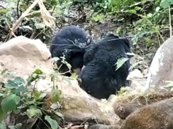 Surguja News: छत्तीसगढ़ के सरगुजा (Surguja) जिले में उदयपुर वनपरिक्षेत्र के खोंधला पहाड़ पर शिकारियों द्वारा बिछाए तार में गुरुवार की दोपहर तीन भालू फंस गए. भालुओं ने तार से निकलने की काफी कोशिश की लेकिन निकल नहीं पाए. वहीं भालुओं (Bears) के चिल्लाने की आवाज सुनकर वहां ग्रामीणों की भीड़ जुट गई. सूचना पर वन अमला भी मौके पर पहुंचा. इस दौरान एक भालू किसी तरह तारों से छूट गया और उसने लोगों के पीछे दौड़ लगा दी.