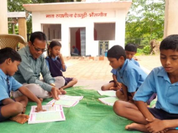 Bastar Schools Building Problem: छत्तीसगढ़ के बस्तर जिले में साल भर पहले जिस गांव में मुख्यमंत्री भूपेश बघेल ने भेंट- मुलाकात की चौपाल लगाई थी उस गांव के स्कूली बच्चों को नए स्कूल भवन देने की घोषणा के बाद भी आज तक भवन नहीं मिल पाया है. लिहाजा बीते साल भर से भैंसगांव गुड़ीपारा की प्राथमिक शाला गांव के देवगुड़ी में संचालित हो रही है. बच्चे देवगुड़ी के चबूतरे में बैठकर पढ़ाई करने को मजबूर है, बच्चों के पालकों के द्वारा प्रशासन और स्थानीय जनप्रतिनिधियों से कई बार गुहार लगाने के बावजूद भी बीते साल भर से स्कूल भवन अधूरा पड़ा है, जिस वजह से स्कूल के शिक्षक देवगुड़ी में प्राथमिक शाला का संचालन करने को मजबूर हैं, जिसके चलते बच्चों और शिक्षकों को कई तरह की परेशानी उठानी पड़ रही है.