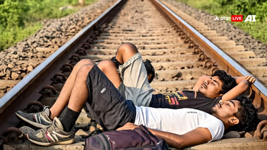 थकान लगने पर पांच युवक पटरी पर ही बैठे रहे