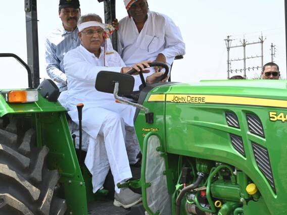 मुख्यमंत्री भूपेश बघेल ने ट्रैक्टर चलाकर की खेत की जुताई