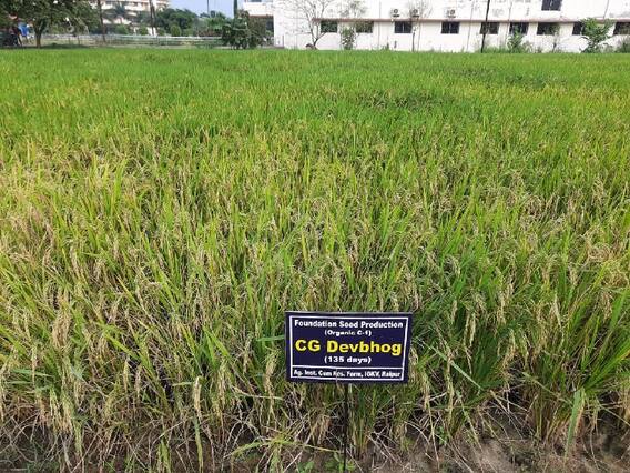 भारत सरकार ने छत्तीसगढ़ के देवभोग को भारत के राज्यपत्र में दिया स्थान छत्तीसगढ़ में सर्वाधिक उत्पादन देने वाली धान की प्रजाति स्वर्णा जो आंध्र प्रदेश कृषि विश्वविद्यालय द्वारा निकाली गई, उसे और छत्तीसगढ़ की पुरानी धान प्रजाति जीराशंकर दोनों प्रजातियों की प्लांट ब्रीडिंग के बाद इंदिरा गांधी कृषि विश्वविद्यालय ने छत्तीसगढ़ देवभोग नाम की प्रजाति विकसित की है. ये पतला चावल सुगंधित और मुलायम चावलों की प्रजाति में गिना जाता है. इसका धान 135-140 दिन में पकता है और उत्पादन 45 से 50 क्विंटल प्रति हेक्टेयर आता है. कृषि मंत्रालय भारत सरकार की बीज विकास समिति ने वर्ष 2019 में छत्तीसगढ़ देवभोग को भारत के राज्य पत्र में स्थान दिया और इसे छत्तीसगढ़, उत्तर प्रदेश, मध्य प्रदेश और महाराष्ट्र के लिए उत्पादन अनुशंसा दी. अब इसी चांवल का भोग अयोध्या में छत्तीसगढ़ से रामलला को चढ़ाया जाएगा.