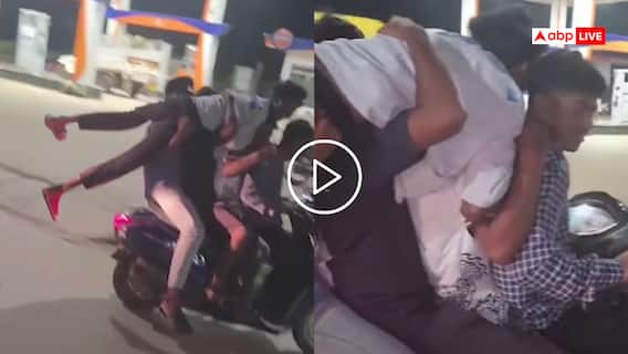 वीडियो में देखा गया है कि पांच युवा स्कूटी पर सवार होकर स्टंट करते नजर आ रहे हैं. वीडियो में साफ देखा जा सकता है कि चार युवा स्कूटी पर बैठे हुए हैं, जबकि एक युवक को बाकी तीन स्कूटी सवार युवा ने सुपरमैन की तरह उठा रखा है और एक स्कूटी चला रहा है. ये दृश्य बेहद खतरनाक था, क्योंकि एक स्कूटी पर इतने लोगों का सवार होना खतरे से खाली नहीं है.