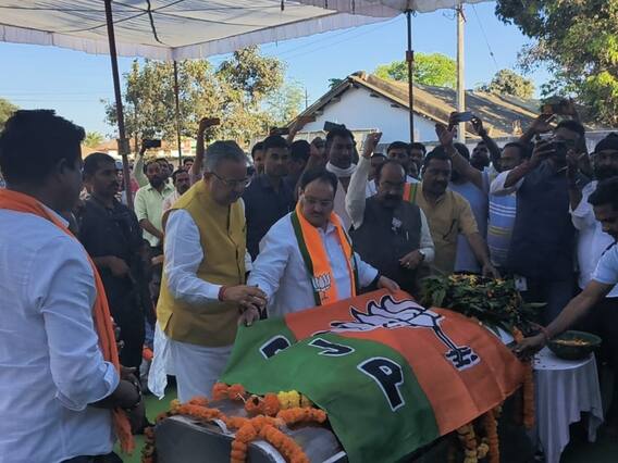 Chhattisgarh Politics: छत्तीसगढ़ के बस्तर पहुंचे बीजेपी राष्ट्रीय अध्यक्ष जेपी नड्डा जगदलपुर के लालबाग मैदान में आप सभा को संबोधित करने के बाद बीजेपी जिला अध्यक्ष के पार्थिव शरीर को श्रद्धांजलि देने नारायणपुर पहुंचे. उनके साथ प्रदेश के पूर्व मुख्यमंत्री रमन सिंह प्रदेश अध्यक्ष अरुण साव और बीजेपी के सभी दिग्गज नेता मौजूद रहे. नारायणपुर के बीजेपी कार्यालय के परिसर में नारायणपुर के बीजेपी जिला उपाध्यक्ष सागर साहू के पार्थिव शरीर पर माल्यार्पण करते हुए राष्ट्रीय अध्यक्ष ने उन्हें श्राद्धाजंलि दी और शोकाकुल परिवार से मुलाकात की राष्ट्रीय अध्यक्ष ने परिवार वालों से ठंडक बढ़ने के साथ उनकी हर संभव मदद करने का आश्वासन भी दिया.