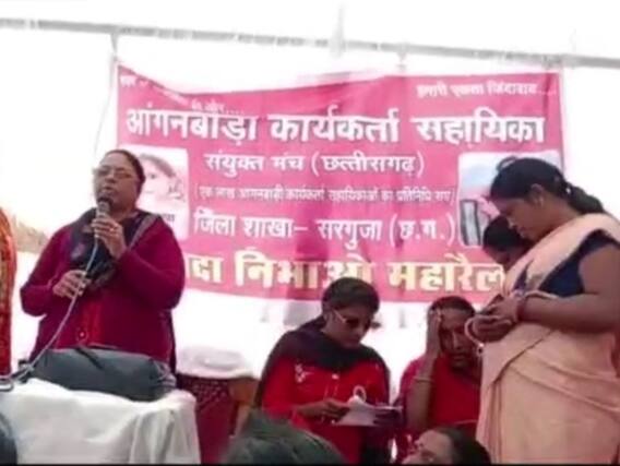 अधिकारी ने आंगनबाड़ियों के प्रदर्शन को ठहराया जायजदरअसल, सरगुजा जिले में आंगनबाड़ी कार्यकर्ताओं और सहायिकाओं की अनिश्चितकालीन हड़ताल से जिले के 2460 से अधिक आंगनबाड़ी केंद्र पर ताले लग गए हैं जिसकी वजह से कुपोषित बच्चों सहित गर्भवती महिलाओं को पोषण आहार नहीं मिल पा रहा है. शासन योजना के माध्यम से आंगनबाड़ी केंद्रों में मिलने वाले पोषण आहार पर भी इसका असर देखा जा रहा है. वहीं, आंगनबाड़ी कार्यकर्ताओं एवं महिलाओं के समर्थन में पहुंचीं अम्बिकापुर जोन की महिला बाल विकास अधिकारी लता टिकस ने मंच से भाषण देते हुए धरना प्रदर्शन को जायज बताया.