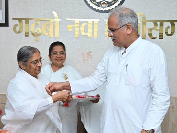 Raksha Bandhan 2023 in Chhattisgarh: पूरे देश में गुरुवार (31 अगस्त) को रक्षाबंधन बड़े धूमधाम से मनाया जा रहा है. छत्तीसगढ़ में भी भाई बहन के अटूट रिश्ते का पर्व रक्षाबंधन बड़े धूमधाम से मनाया जा रहा है. इस रक्षाबंधन पर छत्तीसगढ़ के मुख्यमंत्री भूपेश बघेल को प्रजापति ब्रह्माकुमारी दीदी आशा बहन सहित कई कांग्रेस के महिला विधायकों ने राखी बांधी और उन्हें मिठाई खिलाई. इस दौरान महिला विधायकों ने सीएम बघेल के अच्छे स्वास्थ्य, दीर्घायु और खुशहाल जीवन की कामना की. राखी बंधवाने के बाद सीएम भूपेश बघेल ने सभी बहनों को उपहार के तौर पर गिफ्ट दिए.