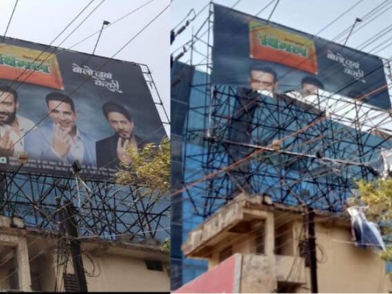 Pan Masala AD: छत्तीसगढ़ की राजधानी रायपुर में पान मसाला ब्रांड पर चर्चा गर्म हो गई है. बॉलीवुड अभिनेता अक्षय कुमार, अजय देवगन और शाहरुख खान के पान मसाला विज्ञापन वाला पोस्टर रायपुर नगर निगम ने फाड़ दिया है. पोस्टर पर तीनों सुपरस्टार की तस्वीर के साथ 'बोलो जुबां केसरी' लिखा था. इसके पीछे नगर निगम ने कारण भी बताया है. पान मसाला कंपनी के एड में अजय देवगन, शारुख खान के बाद अक्षय कुमार की एंट्री हुई थी. तब सोशल मीडिया पर अक्षय कुमार को जमकर ट्रोल किया गया था. बाद में अक्षय कुमार ने फैंस से माफी भी मांगी. विवाद थमे कुछ दिन भी नहीं हुआ था कि अब रायपुर में पान मसाला ब्रांड का विज्ञापन वाला पोस्टर फाड़ दिया गया है. नगर निगम ने होर्डिंग का किराए नहीं मिलना कारण बताया है.