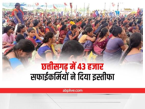 हड़ताल पर बैठने के बाद भी कोई जनप्रतिनिधि सफाई कर्मियों के पास उनकी मांगों को सुनने नहीं आया, इसलिए गुरुवार को सफाईकर्मियों ने बड़ा फैसला लिया है. रायपुर के धरना स्थल में प्रदर्शन करने के बाद एक साथ 43 हजार 301 सफाई कर्मचारियों ने इस्तीफा दे दिया है. सफाई कर्मचारी संघ की महिलाओं ने कहा कि स्कूल में दिन भर कार्य करते हैं लेकिन हमें सिर्फ 2,300 रुपये मासिक मानदेय दिया जाता है. संघ की मांग है की अंशकालीन से पूर्णकालीन करते हुए उन्हें नियमित किया जाए.