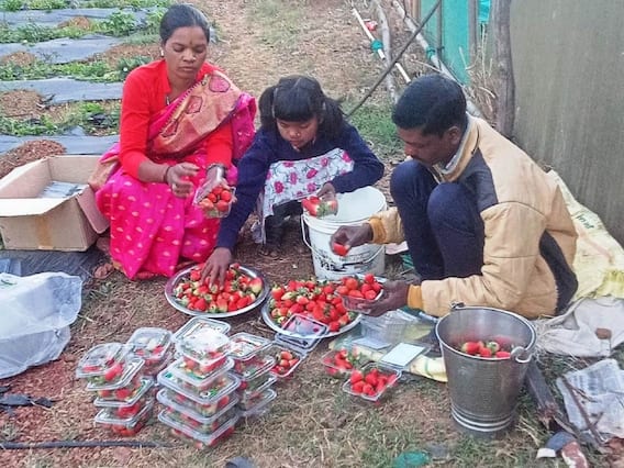 जशपुर के किसान धनेश्वर राम ने बताया कि पहले उनके पास कुछ जमीन थी, जो अधिक उपजाऊ नहीं थी वह बंजर जैसी थी. उन्होंने बताया कि मुश्किल से कुछ मात्रा में धान की फसल हो पाती थी. उन्होंने विशेषज्ञों द्वारा मार्गदर्शन मिलने पर फलों की खेती प्रारंभ की, उन्हें नाबार्ड संस्था से सहयोग भी मिला. उन्होंने 25 डिसमील के खेत में स्ट्राबेरी के 2000 पौधे का रोपण किया. उसमें तीन माह में ही अच्छे फल आ गए हैं. मार्केट में इसकी उन्हें 400 रुपये प्रति किलो की कीमत मिल रही है. उन्हें अभी तक करीब 70 हजार रुपये की आय हो चुकी है. उन्हें राष्ट्रीय बागवानी मिशन से मल्चिंग और तकनीकी मदद मिली है.