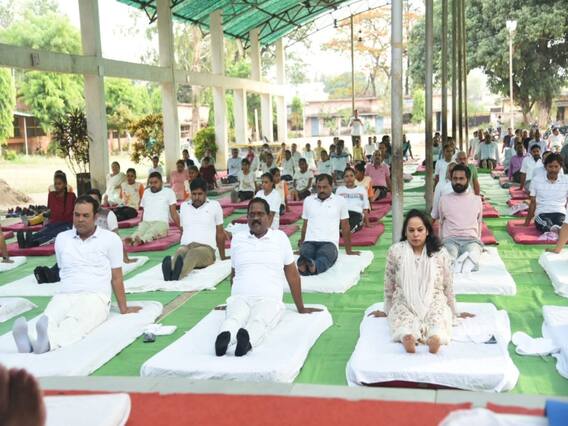 International Yoga Day 2023: अंतर्राष्ट्रीय योग दिवस के अवसर पर बुधवार (21 जून) को 'एक विश्व, एक स्वास्थ्य' एवं 'हर घर, आंगन योग' के संदेश का प्रचार-प्रसार करते हुए सरगुजा जिले में योग महाभियान चलाया गया. इस थीम पर जिला स्तरीय आयोजन प्रातः 6.30 बजे से शासकीय कन्या उच्चतर माध्यमिक विद्यालय में आयोजित किया गया. सामूहिक योगाभ्यास में छत्तीसगढ़ सरकार के कैबिनेट मंत्री अमरजीत भगत शामिल हुए. इस अवसर पर सीजीएमएससी अध्यक्ष एवं विधायक लुण्ड्रा डॉ प्रीतम राम भी शामिल रहे.