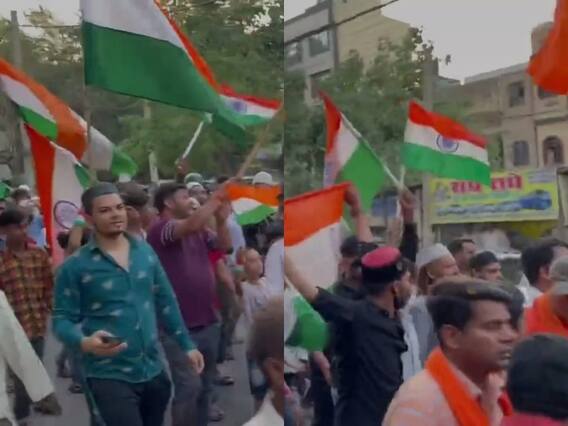 गले मिलते आए नजररविवार शाम को जहांगीरपुरी इलाके में निकाली गई इस तिरंगा यात्रा के दौरान दोनों समुदाय के लोग एक साथ गले मिलते हुए नजर आए. इतना ही नहीं एक साथ भारत माता की जय करते हुए एक दूसरे के बीच एकता का संदेश दिया. इसके अलावा तिरंगा यात्रा के दौरान स्थानीय लोगों द्वारा अपनी छतों से फूल भी बरसाए गए. दरअसल इलाके में भाईचारा और शांति का संदेश देने के लिए दोनों समुदायों ने यह तिरंगा यात्रा निकाली, जिसकी इजाजत पुलिस प्रशासन की ओर से दी गई थी और कड़ी सुरक्षा के बीच में यह तिरंगा यात्रा निकाली गई. दोनों समुदाय के लोग जहांगीरपुरी इलाके की उसी सड़क पर हाथों में तिरंगा झंडा लेते हुए नजर आए, जहां पर 16 मार्च यानी हनुमान जयंती के मौके पर निकाली गई शोभायात्रा के दौरान हिंसा भड़की थी.