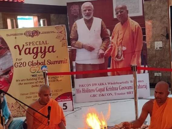 द्वारका के इस्कॉन मंदिर (Dwarka ISKCON Temple) में जी-20 सम्मेलन को सफल बनाने के लिए भगवान से भी प्रार्थनाएं की जा रही हैं. इसी कड़ी में आज जी-20 की सफलता की कामना से इस्कॉन द्वारका में एक हवन-पूजन का आयोजन किया गया. वहीं आगामी 8 से 10 सितंबर के बीच 72 घंटों का हरिनाम संकीर्तन और पूजन का भी आयोजन किया जाएगा. इस्कॉन द्वारका के बाली मुरारी दास ने एबीपी लाईव के साथ बातचीत में बताया कि भारत की अध्यक्षता में पहली बार जी-20 सम्मेलन होने जा रहा है, जो सभी देशवासियों के लिए गौरव की बात है. यह सफलतापूर्वक संपन्न हो जाए यह हम सभी की कामना है. इसी कामना के साथ इस हवन-पूजन का आयोजन किया गया, जिसने वैदिक मंत्रोच्चारण के साथ इस सम्मेलन की सफलता की प्रार्थना की गई.